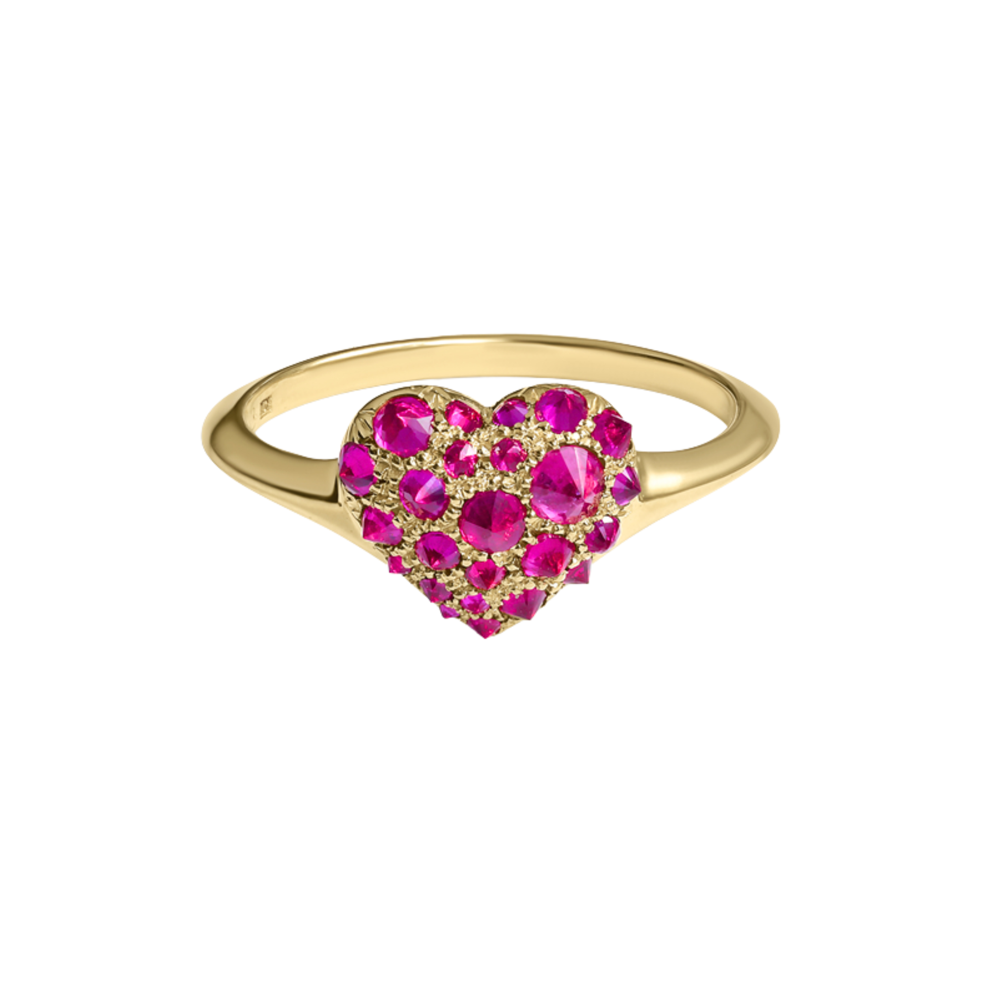 These signet rings are covered in glittering inverted set rubies, and look beautiful worn alone, or stacked with your other pieces for a textured look