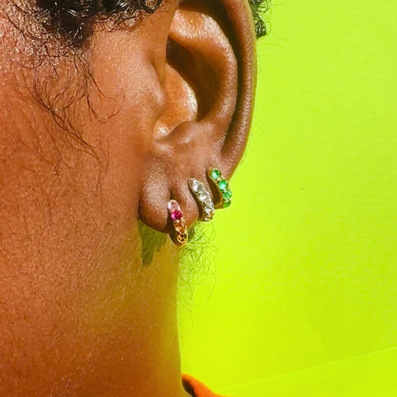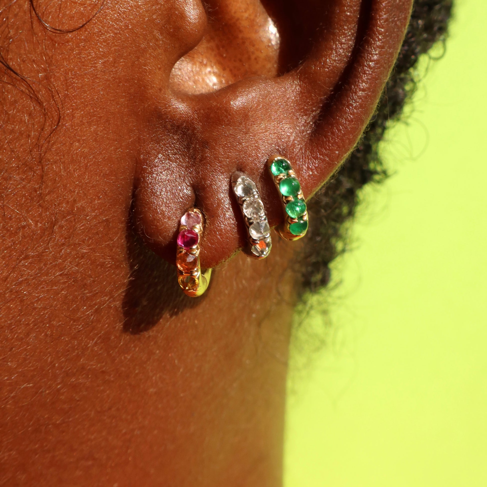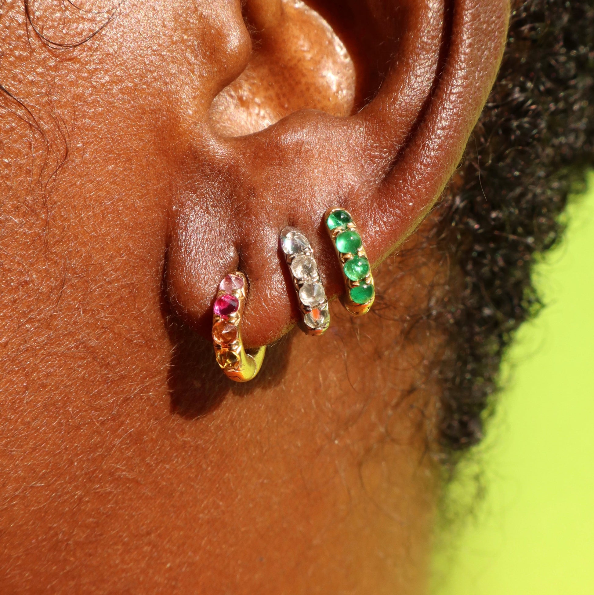 Our best selling gold huggies get the jelly bean makeover with eight of the juiciest looking blue sapphire cabochons set into chunky 18k gold. These earrings are fully reversible and can be worn with the solid gold side showing for a whole different look!